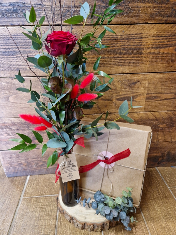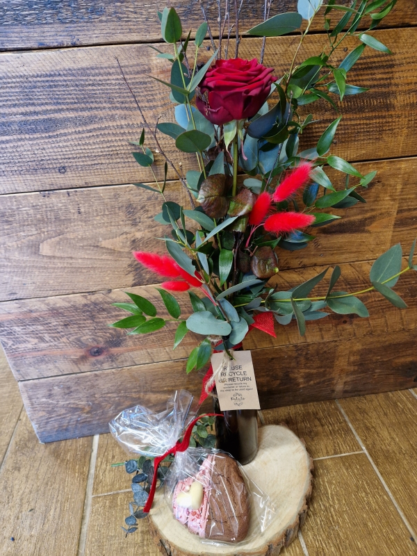 Our popular Rose in a bottle design... but with the added addition of homemade Brownies!